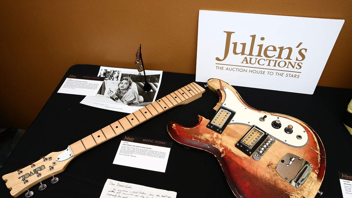 Cobain's guitar from NIRVANA's"MTV Unplugged"gig sold Saturday for a record $6 million.